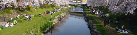 近所の野川もややお人見状態。ライトアップでちょっと有名になってしまったようで、まだライトアップの日程は発表されていないのですが、昼間は大宴会場と化しています。桜並木のある部分に広い河原が少ないということもあるのでしょうが、敷物を敷けるようなところにはすべて人が座っているというような状態。そして、誰も花を愛でるわけではなく、豪快に飲み食いしている、と(笑) 理由をつけて宴会をしようというのがそもそも花見の趣旨のようなものですから、大いにけっこうなんだけど(^_^;)