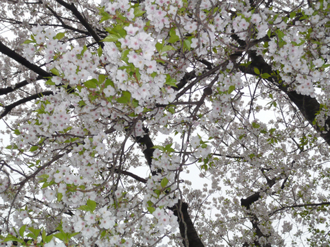 今日は小学校の入学式だったらしく、着飾った子ども、両親、そしておばあちゃん、おじいちゃんも一緒の家族連れが桜の下で記念写真を撮っている風景にたくさん出会いました。入学式に桜……、むかしはけっこう当たり前の風景だったように思いますが、最近は卒業式に桜だったりもしていましたから、この花冷えはちょうど入学式に満開を合わせてきた寒気団のお手柄?(笑)