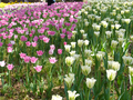こちらではチューリップが花盛り。いや、ちょっと盛りは過ぎてしまったかなというあたりでしょうか。開きすぎたり、枯れて落ちてしまった花もありますが、まだもう少しは楽しめそうです。花壇はいろとりどりのチューリップで色分けされていて、鮮やかな風景です。少しばかり風はありましたがチューリップが終わっても、公園中が春の花にあふれています。