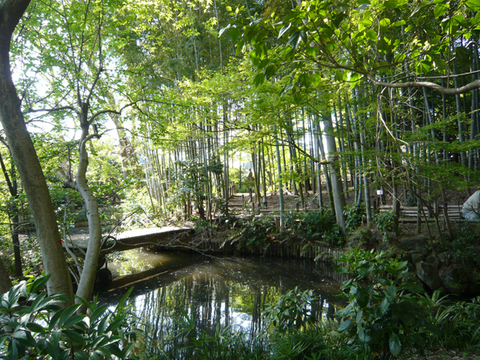 無料で解放されている庭は、入るとすぐに小さな滝があったり、竹やぶがうっそうと繁っていたり、広いお庭です。あとからできたのでしょうけど、途中を道路が横切っているので、邸宅は地下道を潜り抜けてまた別の庭の中にあります。庭のところどころにはベンチや東屋もあって、ご近所の人が散歩や読書などにもいらしているようです。夏になると薮蚊の宝庫という感じもいたしますが……(笑)