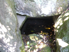 園内も片隅に「ヒカリモ」の成育している場所というのがありました。水の溜まった小さな洞窟みたいな所です。覗き込んでみましたが、まだ季節が早いのでしょう、落ち葉の沈んだ水溜りが見えるばかりで、それらしいものの発見には至りませんでした。もうちょっと暑くなったら、また覗きに来てみようかな。