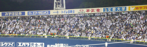 テレビを見れば、渋滞何十キロ、乗車率百何十パーセント。やっぱりゴールデン・ウィークはどこへ行っても混雑の花盛りですねぇ。人混みを避けて、横浜スタジアムに行ってきました(笑) あにはからんや! 浜スタもほぼ満員です。かなり熾烈な下位争いなのではありますが(^_^;) 今日は3万近く入ったのではないでしょうか。いつもガラガラしている定位置も、荷物置き場の椅子がありませんでした(^_^;)