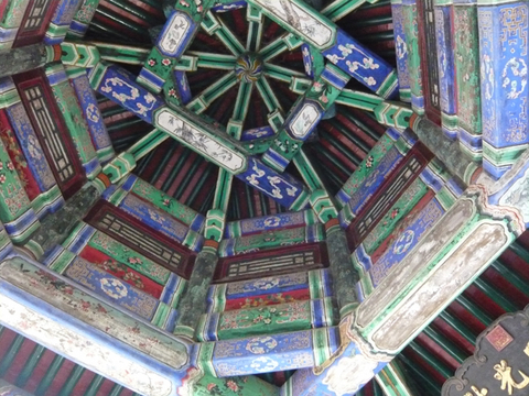 なので、ちょろっと観光でもお腹いっぱいという感じになりますが、もし、人が少なくて、静かであれば、本当に素敵なところなのではないかと思います。平日の早朝などであれば、いいのかも。ずーっと長い回廊の天井には、素晴らしい文様や絵が描かれていて、実に見事。遠くに築山と建物が見えましたが、そういうところをそぞろ歩いてみたいと(-_-;)