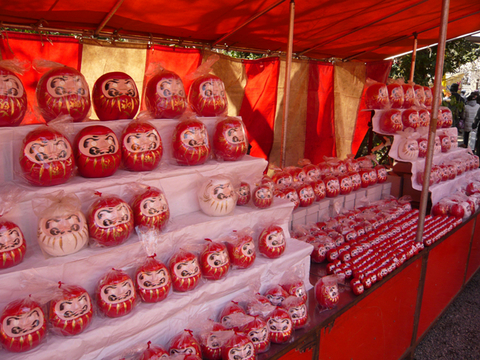 景気が悪いとだるまの売れ行きもイマイチなんでしょうか。景気が悪いからこそ売れる、とか? 深大寺のだるまは「高崎達磨」と書いてある店が多いようです。高崎で初売りされただるまが、関東のあちこちを回って、最後が深大寺と聞いたことがあります。ときおり手締めの声が聞こえてくるのは、だるまが売れた証。でも、売れるのは小ぶりのものが多いような。でっかいだるまは、選挙用ですかね? 来月は盛大に売れるかも?(笑)
