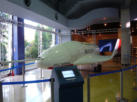 ここは、宇宙というより、航空のほうがメインのようです。近未来の飛行機について、いろいろ展示や解説、映像などがあり、小さなスペースですが、なかなかおもしろいものをいろいろ見せてもらえます。超音速機などは、マッハ2まではすでに実用化の可能性がみえているようで、ひょっとしたら、私が生存しているうちに乗れる可能性も?などと思えてきます。これが進化して、マッハ5になると、東京・ロスアンゼルス間を2時間で飛ぶんですって!