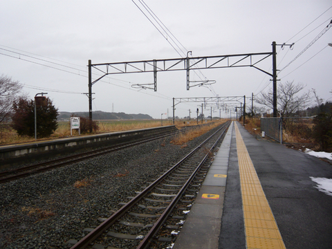 線路も駅もあるのに人の気配のない常磐線の線路。私のような単純な人間は、すぐ「慣れ」てしまって、20μSv/h以上の数字を見せられ続けると、1.00μSv/hなどの数字を見て、「ああ、この辺は低いのね」という感覚になってしまいます。しかし、しかし、1.00μSv/hは低くない、低くない! 東京辺りでは、0.05などの数字で増えたの増えないのと騒いでいる(実際に各自の線量計で測ると0.15などが出るようですけど)のですから、桁がちがいます。一見すると美しい日本の田舎の風景が線量計を見ると……。本当に目に見えない、臭いもしないという物質に感覚的な怖さを感じられなくなるというのが、より怖ろしい感じがします。