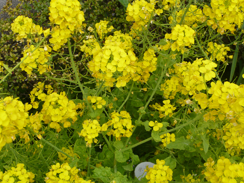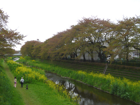 そのかわり、菜の花が川辺を黄色く染めています。いまが盛りといったところでしょうか。例年は、桜と菜の花の競演という風情になるのですが、今年は菜の花が少し出遅れたようで、桜が真っ盛りのときは、黄色はまだまだという感じでした。桜が主役を降りてくれたので、これからは菜の花が頑張る!というふうに見えなくもありません(笑)