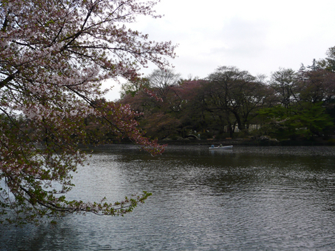 晴れていたので、吉祥寺からいつものように井の頭公園を通り抜けて歩いてみました。桜は、すいぶん緑色に変身しています。我が家の近くより、少し気温が高いのでしょうか、葉桜になる速度がはやいようです。ふらふらと歩いていると遠くでゴロゴロ様の音が……。雷がありそうな予報を聞いたような気もしましたが、それにしても晴れているのにねぇ。これが春雷というやつですか? 雨は伴わないのですね? なんて気楽に考えていると、ポツンと冷たいものが顔に当たりました。それでもポツンだし、晴れているし。