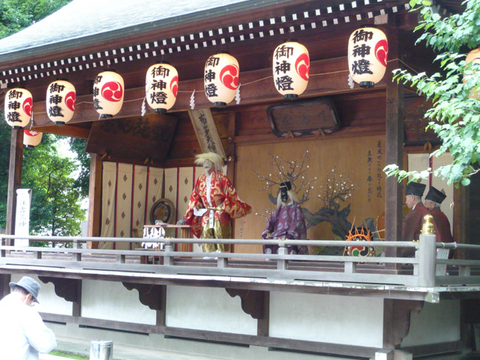 降りそうで降らない雲行きを縫って、いつもとは違う道を歩いていたら、遠くから軽快な和太鼓と笛の旋律が聞こえてきました。何をやっているのかなと足を速めると、神社で里神楽が演じられていました。そう、今日は25日、布多天神社の祭礼の日でした。古い歴史をもつ神社で、むかしは月例の縁日には屋台がいっぱい出ていたものです。最近は、数店の露店がチラホラとあるだけになりました。