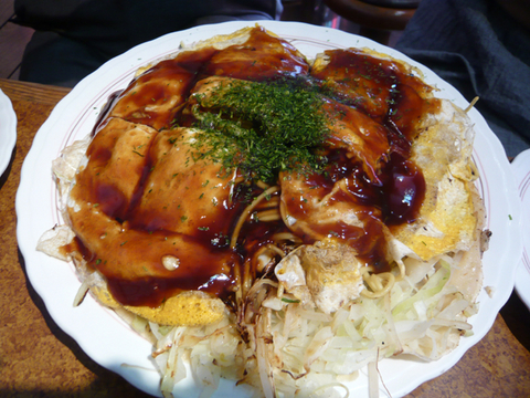 卵と刻みネギをたっぷり、豚ばら肉をのせてシンプルに焼いた、なんでしたっけ、「南平焼」? メモを取らなかったので、メニュー名を忘れてしまいましたが(-_-;) 確か、そんな名前だったと思います。これはこれで、さっぱりしていてなかなかおいしかったです。それにしても広島のお好み焼はボリューム満点。人数より少なめに頼んでも、「もう、野球はやめてホテルに帰って寝る?」というぐらいお腹がいっぱいになりますね。