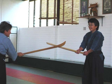 1週間ぶりに友人たちの道場にお邪魔いたしました。朝の早い時間は合気道の稽古、10時ぐらいからお昼過ぎまでは「香取神道流」という古武道の稽古をしています。朝は苦手なので、合気道はパス。古武道のほうだけ、見学というか、冷やかしというか、邪魔というか、端っこに座って、なかなか貫禄のある先生ぶりを発揮している友人たちの写真を撮ったりしていました。真剣なまなざしで木刀や薙刀を振るのは、オーストラリアの青年たち。そういえば、女性のお弟子さんは見たことがありませんが、いないのかしら?