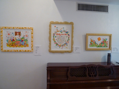 この絵は、可愛らしかったり、おもしろかったりする額縁で囲まれていますが、この額縁も山形さん本人が製作したものだそうです。アンシンメトリーな物やちょっと変わったデザインのもの、それぞれが絵とマッチしていて、額縁だけでも楽しめます。絵本や版画カードの販売もしているので、プレゼントに1枚購入。私個人としては、カードより絵がほしい(笑) 個展が終わったら、この絵は売ってもらえるのでしょうか? 高いと買えないけど(^_^;) 8日までやってます。ぜひ、見にいってみてください! 気分がうきうきしますよ!
