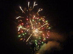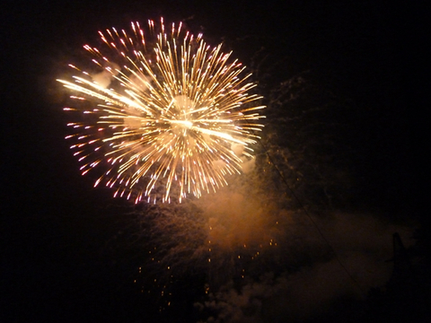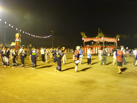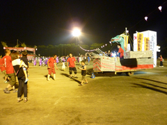 それぞれの地区から山車も出て、踊りの輪の外側を山車もゆっくり行進しています。いたいた、お祭り男(笑) いつもお米や野菜を送ってもらっている「熱血! 竹内農園」の竹内ブラザーズを発見。いろいろ工夫を凝らした山車を製作していました。締めは花火で。小規模ではありますが、その分だけ近くて、美しい花火を堪能しました。高原にもかかわらず、ここにも猛暑はやってきていて、下界ほどではありませんが暑かった〜。それでも楽しい、貴重な体験をさせてもらいました。