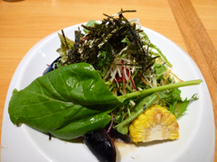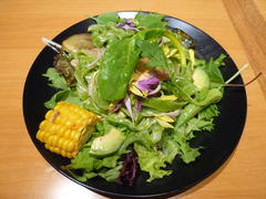 今日は、私は5種類のきのことムール貝の和風パスタ。もちろん野菜もたっぷりです。もちもち麺にきのこと醤油ベースのソースがよく合っていました。モモタロウはほうれん草のフィットチーネ。こちらもおいしそうで、次はそれにしよう、なんて(^_^;) 野菜がメインの料理は、季節によって材料の野菜も変わりますから、いつ行っても違った味が楽しめます。逆に言えば、同じものを食べることはできないということでもあります。一期一会の味ですね(笑)