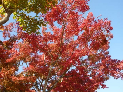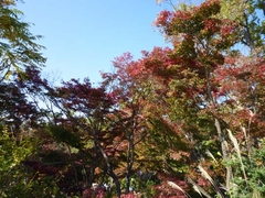秋らしい晴れとなった一日、おっきいちゃんと高尾山に行ってきました。互いにストレスに押しつぶされそうになっている日々なので、山の空気にふれてくるのもいいかな、と。相方は、「混んでるし……」とか、ぶつくさ言っておりましたが、行けばそれなりに歩くことが気分転換にはなったようです。確かに、ミシュランさまのおかげで混んでることは混んでいるのです。しかしながら、まだ紅葉まっさかりとはいかず、平日なので、芋を洗うという状態ではありませんでした。疲れると空いているベンチに座って、一息ついたりもできました。あちこちで(笑)