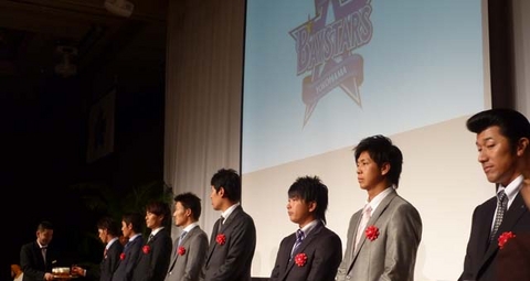 開始時間にはポツポツと落ち始めていた雨が、終わって出てきたときには暴風雨。雨のほうはそれほどひどくはありませんでしたが、風が吹き荒れていて、駅までほんの50メートルばかり歩くのに3度も進めなくなり、1度は2歩後退までさせられるほどでした。駅に着いたら、電車は遅延、運休……。やっと乗れた電車が突然、途中の駅で終点になってしまったり。当然、通勤ラッシュに近い混みようでもありました。帰ってくるだけでヘトヘト(笑) そいうえば、去年もこのパーティの日は冷たい雨が激しく降っていて、ヨレヨレで帰ってきた記憶があります。来年もベイスターズは多難かな?(笑)