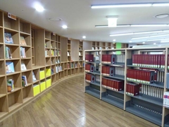 観光旅行ではないので、今日はまず、ソウル市庁舎の点字図書室を見学。点字図書やCDなどがラックに収められていますが、数はそう多くはありません。対面朗読室も1室。ここは1年ぐらい前にできたそうで、係員の人は障碍者採用(弱視)ということでしたが、まだ勤め始めて9ヵ月だそうです。韓国の障碍者用施設は、やっと最近、作り始めたところという感じで、これはまあ、日本のほうが20〜30年先行している感じです。施設は日本のほうが数も質もそろっているようですが、雇用の問題はいずれの国も遅々として歩まずの感はいなめません。って、私はそっちの事情はほとんど知らないので、聞きかじりの受け売りですが(^-^;):