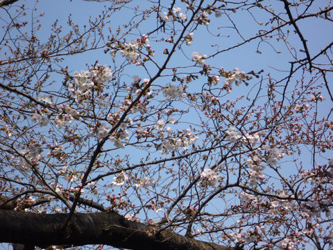 都心では数日前から桜が咲き始めているようですが、多摩地区はやはり多少は気温が低いのでしょう。私が勝手に基準木に選んでいる桜は、まだ一輪も花をつけていません(笑) 少し先の一番日当たりがいいと思われるところの木は、なんとけっこう花開いているではありませんか。不思議。同じ河原の並木でそんなに条件は違わないと思われるのですが、木にも気の早いタイプとのんびり構えるタイプがあるのでしょうか(^_^;; 私は、すごく桜好きというわけでもないのですが、今日か、明日か、という時限爆弾を見張っているような妙な楽しみがあります(笑)