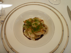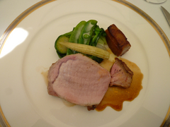 ときどき集まる寺子屋時代の幼馴染プチプチ女子会。今回は日比谷公会堂の向かいにある「南部亭」というレストランで、さわやかな午後を過ごしました。最初は室内の席に案内されたのですが、テラス席にキャンセルが出たということで、日比谷公園が見渡せるラッキーな席に移動。穏やかな日差しと時折の微風の中でおいしいランチをいただきました。メインディッシュは何種類かの肉や魚から選べるのですが、なぜかいっせいに「ポーク!」、誰もイスラームに入信はできそうもありません(笑) 前菜はバラバラでしたが、私は帆立と蓮根のコンソメジュレ。どちらもさっぱりした味付けでおいしゅうございました。