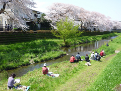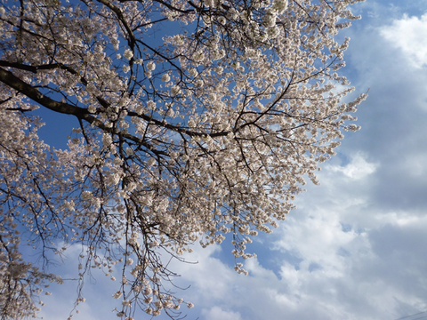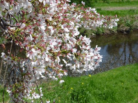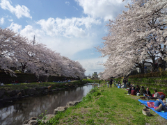お昼から始まったのですが、始まってすぐポツポツと大粒の雨が落ち始め、河原いっぱいに繰り広げられていた花見グループのいくつかは撤退。根性で残った人たちも傘をさしたり、シートで屋根を作ったり、当然のことながら食べ物に必死で蓋をする騒ぎに(笑) しばらく経つと雨はまた、突然やんで、今度は初夏を思わせる強い日差しが照りつけました。毎日、変なお天気が続きますねぇ。気がつけば、撤収したグループの跡地には、また新しいグループが宴を張り、小さな川を挟んで両岸の花見の宴は連なっていました。春休み最後の週末だからでしょうか、たくさんの子どもの姿が。これ、走り回るな!(笑) 都心よりやや遅めに満開を迎えたので、こちらはまだ数日は花の盛りを楽しめそうです。