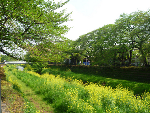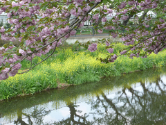 私は国際情勢はどこ吹く風で、川風に吹かれて散歩です。野川の葉桜も、ようやくカッコがついてきたという感じ。緑が濃くなって、初夏を感じる風情になりました。わざわざ遠くの郵便局を目指していたのですが、いつも曲がってしまう道のちょっと先に、あれあれ、まだ桜が咲いている? ピンクの花びらが見えました。少しだけ足を伸ばしてみたら、もちろんソメイヨシノではなく、八重桜というのでしょうか、まだ花をつけている木が2本だけありました。緑の中にさまざまな色の花がちりばめられて、春は本当に色彩豊かですね。