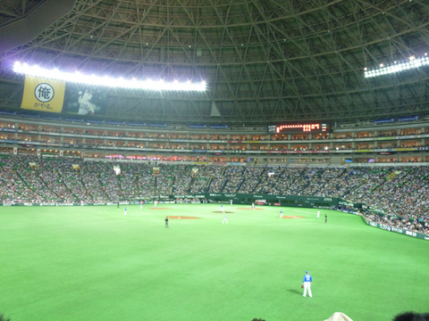 6、7年ぶりになるでしょうか、もっとかな? ホークス戦を見るために福岡ドームに、いまはヤフオクドームというそうですが、行ってきました。町内会の長老が行きたいというので、お世話係?(笑) 一緒に行ったメンバーは5人ですが、現地であと3人が合流。なんのことはない、いつも見知った顔が勢ぞろいです。週末だったこともあり、みんな半分は観光目的。とはいえ、眠い目をこすりながら早朝の飛行機に乗って、負け試合ではけっこうつらいです(-_-;; 交流戦優勝がかかっているホークスファンはぎっしり。ビジター席はほんの一握りでしたが、久しぶりの外野席で、それなりに楽しく過ごしました。
