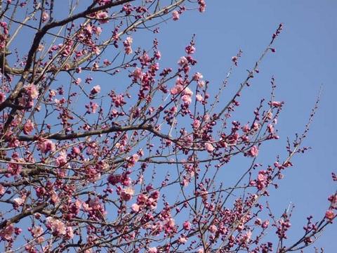 1週間のうち半分は靴も履かず、体重はじわじわと上昇の兆し……。ちょっと反省して、神代植物園まで梅の咲き具合を偵察に行ってきました。途中、ちょっとした坂道があるのですが、いっきに登りきれず休憩。こりゃ〜、そーとー運動不足だと再認識しました。ちょっと前までは、そこに坂があるという認識すらもっていなかったくらいなのに(-_-;; 今日は日曜日で、天気もよかったので混んでいるかと思ったのですが、風が強く体感温度は相当低いということもあり、人影は少なかったです。まだ、梅も咲き始めだし、他の植物も芽吹きまでにはもう少し時間がかかりそうなので。