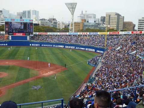 オープン戦を見に、横浜スタジアムに行ってきました。実は、先週、浜スタで行われたオープン戦の初戦にも行っているのです(^_^;; これも浮世の義理というわけで(笑) 先週は平日ということもあり、外野席はいっぱいでも、内野は一部開放というくらいでした。しかし、今日は土曜日で、内野席も全開放なのに満杯。ひょっとするとシーズン中よりも入っていたのでは?という感じでした。ちょっと遅れる予定のあった長老に席を取っておいてくれと言われて、試合開始30分前には行ったのですが、甘かった! 席はほぼ埋まっていて、うろうろしたあげく、いつもの席よりさらに上のほうの横のほうで、真ん中に2つの空席を見つけ、もぐりこんだのでした。みんな野球の季節が始まるのが楽しみなんですね。私はちょっと……、やや、あー面倒くさいという気分もあります(^_^;;