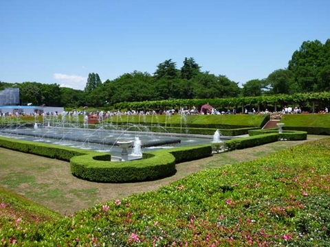神代植物園は、広いバラ園がけっこう有名です。毎年、5月には春のバラ・フェスティバルが催されます。2週間ほどなので、行き損なってしまうことが多いのですが、今日はふと思い出して、吉祥寺に行く前に寄ってみることにしました。我が家から裏門(深大寺門)までは、近道を使って15〜20分ぐらい。ただし、知る人ぞ知るルートなので、アップダウンがきつい、きつい。急な坂道は、途中で一息つかなければならないくらいで……、これは坂道のせいというより、こちらの体力のなさを物語っているだけかもしれませんが(笑)
