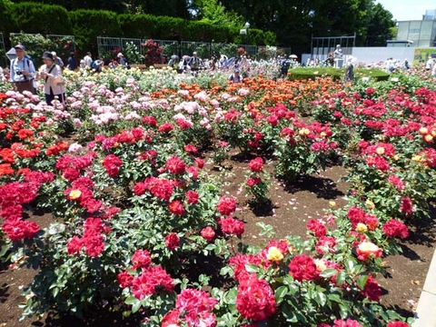バラだけでも何百種類もあり、今年の世界コンテストに出品される新種なども展示されていて、十分に見ごたえがあります。ただし、今年は暖かいせいか、みんな満開で、ちょっと派手すぎ(笑) バラは、咲きかかり……という風情が一番美しいような気がしますけど。あんまり無防備にパーッと咲かないでほしいというのは、はい、贅沢な注文でした〜。今月いっぱい開催されているようです。