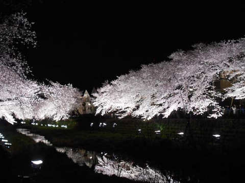 毎年、一日限りの野川の桜並木のライトアップが行われました。いつも同じ説明になるのですが、アークシステムという映画の照明会社のボランティア、企業の場合メセナっていうんでしたかね、とにかくそれで運営されています。電気代も半端ないというわけで、見に来る人から募金を募ったりしたこともあったのですが、会社はいっさい受け取らず、市に寄付しちゃったりするので、募金活動は中止になっているようです。