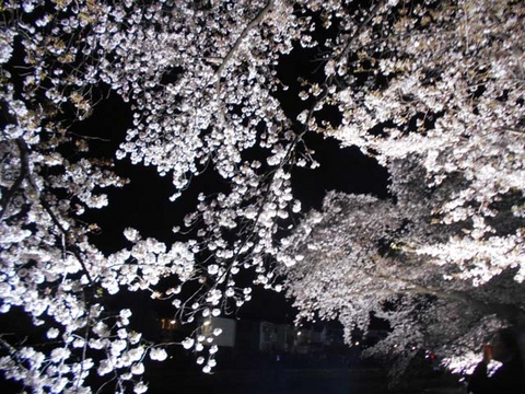 毎年、お花見のメインエベントはこれ! 野川の夜桜ライトアップです。ころあいを見て、1日だけ、それもわずか3時間ほどのライトアップですが、それはそれは幻想的。本当は、友だちなどに「見に来て!」と声をかけたいところなのですが、告知されるのが前日か、せいぜい前々日。地元民の楽しみで、本当はあまり多くの人に来てもらいたくないのです(笑) その上、駅から遠いし、近所に飲食店もなし。今年はさほどではありませんでしたが、夜の河原はけっこう寒いですしねぇ。なかなかお誘いもしにくいところです。私はダウンコートを着て、右手をできる限りブロックして、ゆっくり(しか歩けませんが)、そぉ〜っと見物してきました。