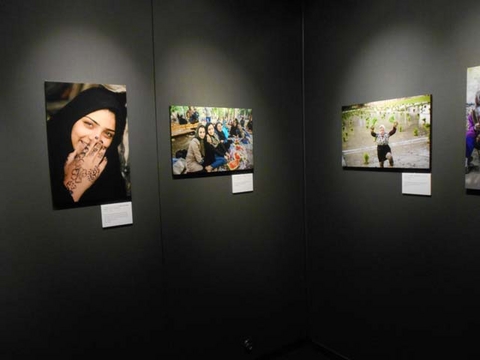 イスラームの女性というと、黒いヴェールで顔を隠して……と思っている向きも多いでしょうが、最近はけっこう華やかなヴェールの若い女性も多く(国にもよりますが)、黒いヴェールは高齢女性が多いという感じじゃないでしょうか。付け加えると、そのヴェールの下に着ているのは、日本人なら目をむいちゃいそうな派手な衣装が多いです(笑) そういうヴェールで被われた女性たちも、女性同士やお祝いの席などでは、華やかな笑顔が弾けます。そんな日常のひとコマを切り取った写真展で、興味深いものでした。