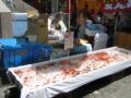メインストリートの商店街通りは、数百メートルに渡って思い思いにに趣向が凝らされた大小さまざまな竹飾りが展示されています。露店の数も多く、関東、東海、上信越からももっとも多くの露店商が集まるイベントだそうです。家族連れが多いことから、食べ物のほかには揚げ風船などの商いが目立ちました。
