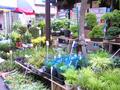当日は、周辺の道路が車両通行止めになり、道路沿いに緑深い植木鉢や色とりどりの草花を商う露店が立ち並びます。別の一角には縁日にはおなじみの焼きそばやチョコバナナなどの食べ物の露店や水ヨーヨー、金魚すくいなどの店も出ています。昔懐かしいというか、はじめて見たというか、昔スタイルの金魚すくいの露店も見つけました。