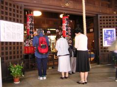 境内一帯にはよしずばりのほおずき売りの店がたくさんん並び、いなせな祭装束のお姐さんや兄さんが威勢のいい声でほうずきを売っています。一鉢の値段はだいたいどこでも2500円。祭が終わる頃にはダンピングもあるのでしょうか?