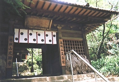 長い石段を登っていくと広目天と多聞天が目を光らせている山門があり、その奥の深い木立ちの中に本堂はあります。この山門にはわらじがたくさん掛けられていて、それを見るとここがかつて旅人の守護をしていたお寺であったことが偲ばれます。山を越えて旅をする人々が、道中の安全を願って、ここのわらじを奉納したのうでしょう。鎌倉時代には、武田一族が頼朝への奉仕で交代通行の際に、この寺で人馬の足を休ませたといいます。参 勤交代のようなものが、鎌倉時代にもあったんですね。