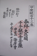 私は別に悪行を重ねたつもりはありませんが(^_^;)、もし、後になっちゃったら汚れ水を渡らなきゃならなくなるし、ここはひとつ、お付き合いしましょうってんで、甲斐百八箇所霊場めぐりを敢行することにしました。簡単にいえば、要するに運転手。煩悩の数と一緒だし、ちょうどよいのではないかと。いっぺんには無理なので、ちょっとずつね。