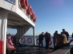 7時にホテルを出発して、ラプセキ港に到着するとそこにはもう、船を待つクルマの列。乗用車あり、バスあり、大型トラックあり、そろそろ乗船は開始されるようだ。列が動き、ゲート抜けて乗船。と、私たちが乗車するバスの1台前でいったんゲート閉鎖。え? すると再びゲートが開き、前のクルマが乗船。次は私たちのバスだというところで、ゲート閉鎖。