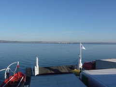 早朝にチャナッカレを出発して、フェリーでダーダネルス海峡を渡り、イスタンブールへ向かう。9時にラプセキ港を出るフェリーに乗る予定だが、フェリーは時間にならなくても満杯になれば出港してしまうとか。しかも、これに乗れなければ、次は2時間待ちだという。そりゃあ、急がなくっちゃ!