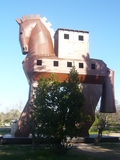 遺跡の入り口には「トロイの木馬」にちなんで、中に入ることもできる大きな木馬が立っている。完全に観光用。遺跡を囲む壁が、第6市の城塞だそうだ。シュリーマンは当初、第2市の遺跡から「プリアモス(トロイの最後の王)の財宝」を発掘したといわれる。