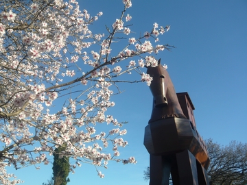 トロイの遺跡は、9つもの都市が折り重なっているわけだが、どれが第○市などというのは、当然、素人目にはわからない。途中に地層をすっぽり切り取ったようなところがあって、ここが第1市、この部分が第2市とわかりやすく示している場所があった。表示はわかりやすくても、違いはほとんどわからない……。これは専門分野の人でなければ、わからなくてもしょうがないだろう。観光客は「そうですか。うん、遺跡ね」……(^_^;) 早咲きの桜の花がきれい……。