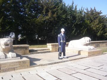 廟の内部は柩が置かれている。この建物を取り囲んでいる回廊がアタチュルクの功績をたたえ、トルコ建国の歴史を語る博物館になっている。兵士の写真を撮ろうと声をかけた人に、何人かの兵士が寄ってきて一緒に記念撮影をしようという。実にフレンドリーな兵隊さんだ。とくに日本人には親切なのだそうだ。