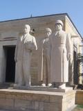 霊廟は広々として、どこも等間隔に衛兵が立っている。「人形のように動かない」と言われたが、そんなことはない。カメラを向けるとにっこりしたり、教えてもらったばかりのトルコ語で「ギュナイドン(おはよう)」と声をかければ「ギュナイドン」と返事をしてくれる兵士もいた。廟へ向かう入り口には男性3人がそれぞれトルコの学業、農業、軍事を支えていることを象徴する「独立の塔」とアタチュルクの死を悲しむ女性3人の「自由の塔」が建っている。